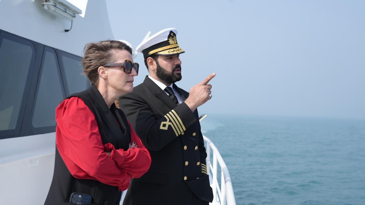 On Monday, February 9, 2026, Ms. Géraldine Delannoy, representative of the International Association of Marine Aids to Navigation and Lighthouse Authorities (IALA), carried out an inspection tour at Al Faw Grand Port. The visit included a review of the system of navigational buoys and the routes of the maritime channels, accompanied by Captain Zain Al-Abidin Adel Al-Moussawi, the Iraqi Ports Authority’s delegate to the organization, along with several technical and maritime staff.