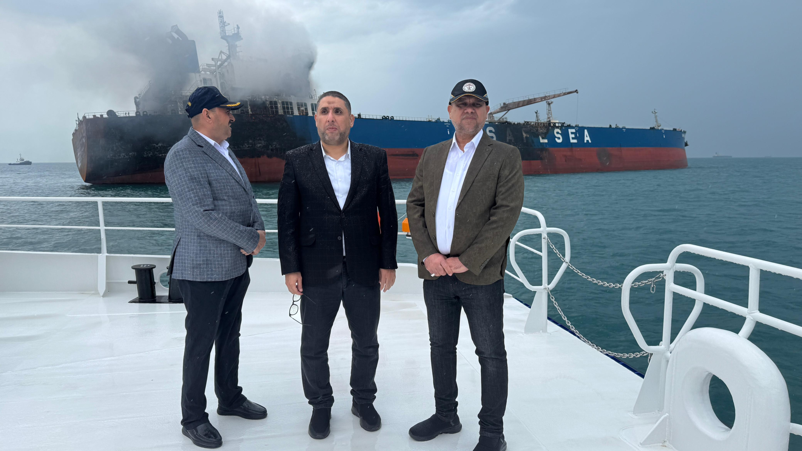 Accompanying him were Chief Engineer Aslan Abdullah, Head of the Marine Affairs Department, and Captain Uday Qasim, Director of the Marine Control and Guidance Department. Together, they assessed the extent of the damage and the technical procedures carried out by the company’s maritime teams.